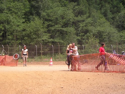 Ein paar Impressionen: Unten index1: Ein paar Bilder vom Gipfel runter Unten index 2: Erzberg: Hare Scramble Strecke im Downhill Test mit der Querung der berüchtigten Schrägseilbahn. Die Steinpassagen sind etwas arg. Index 3 und 4: Unsere Hockn am Sonntag. Nach 1 Stunde ist es uns etwas fad geworden, da wars dann nur mehr lustig. Nach 2 Stunden sind wir dann Rennen schauen gefahren. Index 4: Da gehts zur Sache. Die berühmte Wasserrohrauffahrt. Bei dem Höhenunterschied muss man fast einen Druckausgleich dazwischen machen. Dann der Gerichtsgraben. Was dort gerichtet wird ist klar. Kubikmetergroße Felsbrocken vernichten die letzte Hoffnung das Ziel zu sehen. Weiter zum Dynamite Trail. Dort gehts bisserl holprig rauf. Hannes und ich haben den Fahrern geholfen, bis der Regen kam. Dann haben wir uns unters Zelt gestellt und gesehen wie sich der Weg in 20 Minuten in einen reißenden Gebirgsbach verwandelt. --> Dann das unglaubliche. Es kamen noch Fahrer. Da ist noch wer rauf gefahren. Wahnsinn. Manche sogar ohne Hilfe. Wir wissen jetzt auch wie sich die Slalom Weltcup Elite auf den Sieg im Gesamtweltcup vorbereitet. Wie es schon beim Karate Kid angefangen hat --> Auftragen, polieren So gesehen bei unseren Nachbarn. Katrin Zettel in Action beim Grillputzen. (index 3)