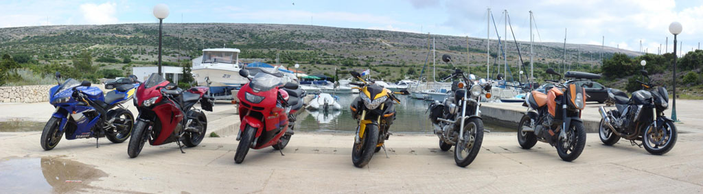 Bild by Bertl, Martin & Hörmi Bereits ein Woche im Voraus war echtes "MRB Tour Wetter" mit Regen und Schneefall angesagt. Infolge wurde die Gruppe derer die erfolgreich eine Ausrede suchten, warum sie den nicht mitfahren konnten immer größer... Trotzdem fanden sich Mittwoch früh 8 mutige Männer und ihre (mehr oder weniger) scharfen Eisen am besprochenen Treffpunkt ein, den echte MRB's und vor allem solche die immer mit unserem Regengott "Hörmi" unterwegs sind, haben eine Allwetter Ausrüstung und lassen sich von 1000km im Regen nicht abschrecken! Der Hartneckigkeit sei Dank wurden sie in Novalja, dem diesjährigen Ziel mit Sommer, Sonne & kühlem Bier belohnt... Details siehe die folgenden Links