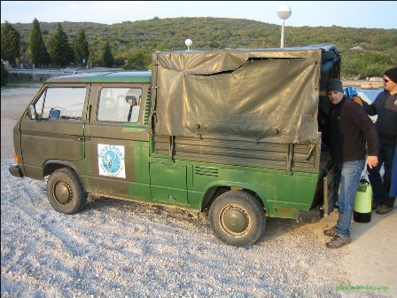 Jeder Abenteuer Veranstalter würde für eine Fahrt mit DEM VW Bus einen saftigen Zuschlag verrechnen. Nur bei Tauchausflügen mit Divesport.de ist DER VW Bus mit Vollausstattung im Paket implementiert. Man beachte den Fensterheber: 1x Schraubenzieher raus, Scheibe langsam runter, 2x Schraubenzieher raus, Scheibe sehr schnell runter, kein Schraubenzieher mehr drinnen.... Spiegel auch weg ...