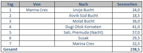 Start und Ende unserer Tour war Cres - dazwischen lagen 240sm in sieben Tagen mit viel Erlebnissen, Wahnsinns Spaß, geilen Tauchgängen, super Wetter, einen selbstgefangenen Drachenkopf ... und einem zerdrückten Hut.