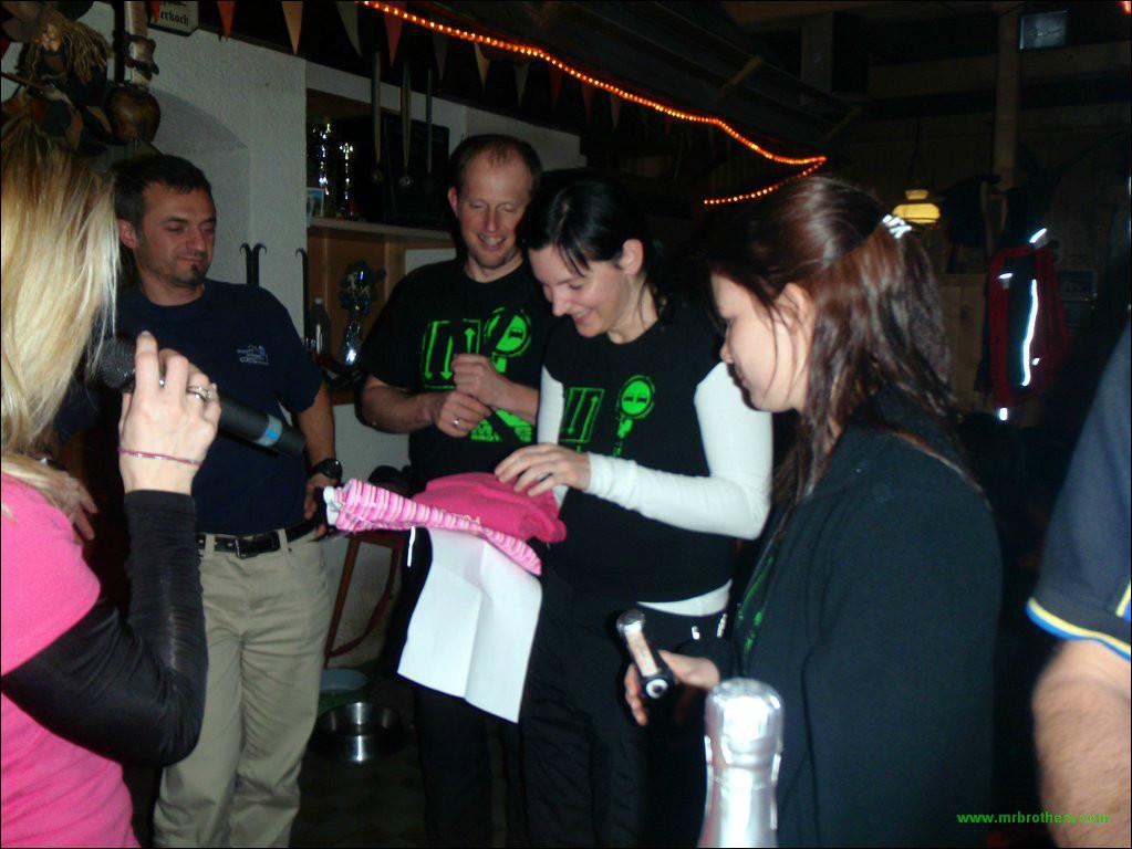 Im Almreserlhaus angekommen ging es gleich lustig zur Sache. Der Zirb'n durfte auch dieses Jahr nicht fehlen. Zu Feiern gab es ja genug. Unsere "Geburtstagskinder" (vor kurzem erst volljährig geworden) hatten viel Spaß mit ihren Geschenken.