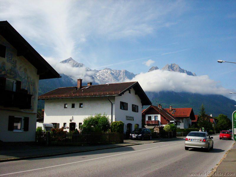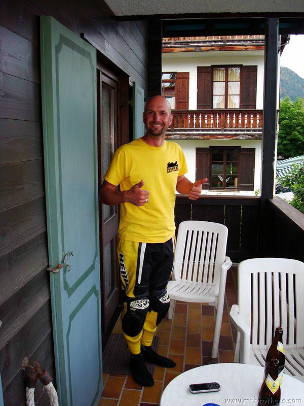 Die Tour begann, wie die meisten Touren, mit Regen im Ennstal. Also rein in die Regenkombi und ab in den Süden ... nein diesmal ging es nicht in den Süden, sondern zuerst mal nach Linz, um die Satteltaschen zu holen, die wir dort vergessen hatten. Um den Rucksack erleichtert starteten wir dann von Linz aus die "richtige Tour": Über Salzburg und den Süden von Bayern war das Ziel die Gegend um Garmisch-Partenkirchen. Wie schon ein paar Jahre zuvor, hatten wir aber dort das selbe Wetter: Nebel, soweit das Auge reicht. Übernachtet hatten wir in kleinen Hotel Alpenhof in Oberau. Zum Glück gab es dort eine Sauna, um die steifen Knochen wieder etwas aufzutauen.