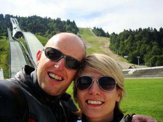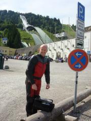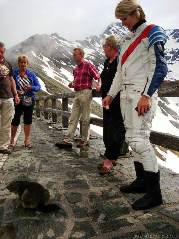 Am Freitag machten wir einen Abstecher nach Garmisch-Partenkirchen. Dort machten wir uns auf die Suche der Schi-WM-Stätten, und besichtigten das Olympia-Station mit dem WM-Slalomhang und den Sprungschanzen. Bei tollem Motorradwetter ging's dann quer durch Tirol, über die Krimmler-Wasserfälle, weiter zum Großglockner. Sonnenschein und ein wenig Optimismus ließen uns eine Mautkarte kaufen, und rauf ging's auf den Pass. Am Fuschertörl wurden schnell noch ein Murmeltier gefüttert, und weiter ging's. Im Tunnel auf der Passhöhe kamen uns dann schon die ersten Nebelschwaden entgegen, und nach dem Tunnel auch noch der Regen. Der Nebel war so dicht, dass man die Kehren erst sah, wenn man mitten drinnen stand. Die Sicht wurde aber doch gleich wieder besser, aber dennoch fuhren wir mit Regendress durch halb Kärnten. Ziel war das bekannte Hotel zur Post am Millstätter-See.