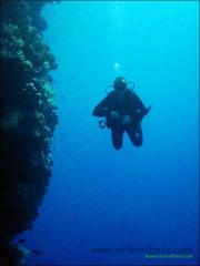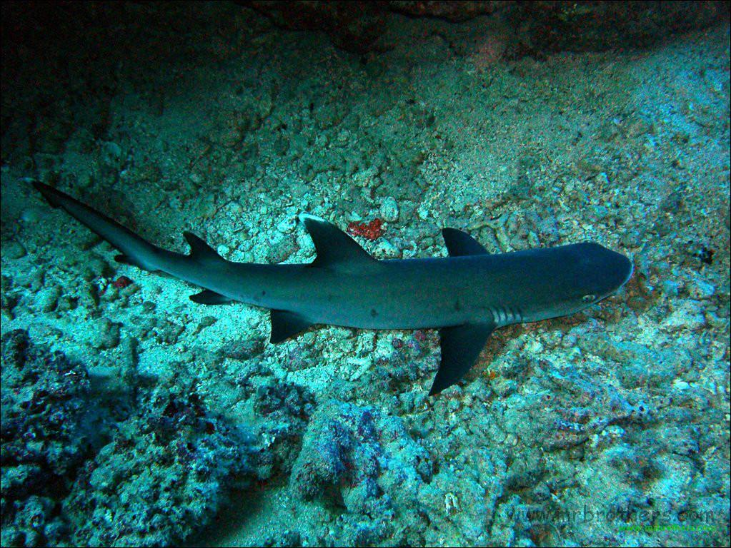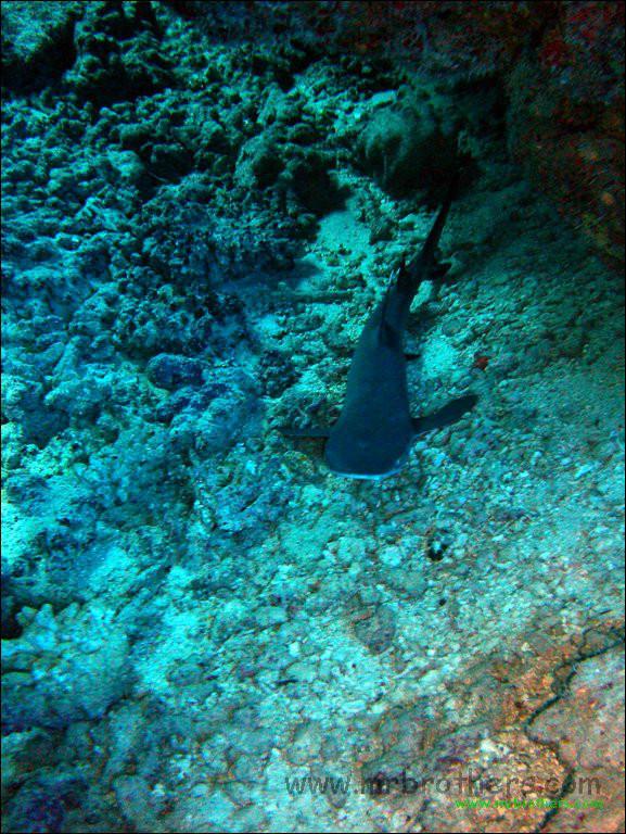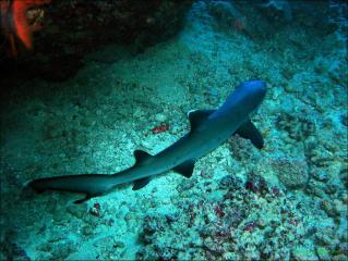 Die ganze Woche haben wir gewartet, (auf: "the big fuxxing shark behind you"), am Freitag wurde er durch unseren Guide Tom angesagt, ein junger Weisspitzen Riffhai, unserem Taucharzt entsprechend heißt er "Wolfgang".