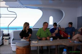 die nächtliche Überfahrt nach Rocky Island (Deep South) bei ordentlich Seegang hat den einen oder anderen nicht so gut schlafen lassen. Trotzdem standen 3 Tauchgänge rund um Rocky Island am Programm, wobei der letzte Tauchgang an diesem Tag wird wohl jedem in Erinnerung bleiben. Die beiden Kollegen: "DJ Aladin" und "Mr 100" probierten aus was passiert wenn man mit Nitrox 32 tiefer als 40m geht. Dank Birgit welche rettend eingriff, war die Woche nicht vorzeitig zu Ende (weil das ganze Boot wegen einem Tauchunfall an die Kette gelegt worden wäre).