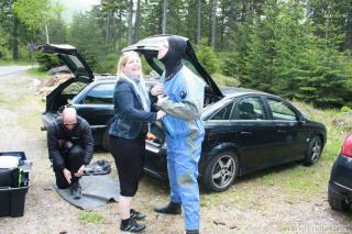 Nachdem der Grüne See sich heuer, Dank Mega-Schnee-Winter, wieder mal von der ganz vollen Seite zeigt, haben wir beschlossen uns dieses klare Wasser wieder mal genauer anzusehen. Es war auch "gleich" der gemeinsame Termin, Pfingstsamstag, gefunden. Leider dachten sich das auch ungefähr 200 andere Taucher, und so mussten wir etwas weiter weg vom See unser Equipment anziehen. Aber Alex-sei-Dank, hat im Amarok auch wirklich alles Platz, und wir hatten einen perfekten Equipmentwagen, um unser Zeug zum See zu schaffen. Ein Wenig Luft in den Reifen hat halt gefehlt, aber dafür ist im Amarok eh ein Kompressor montiert.
