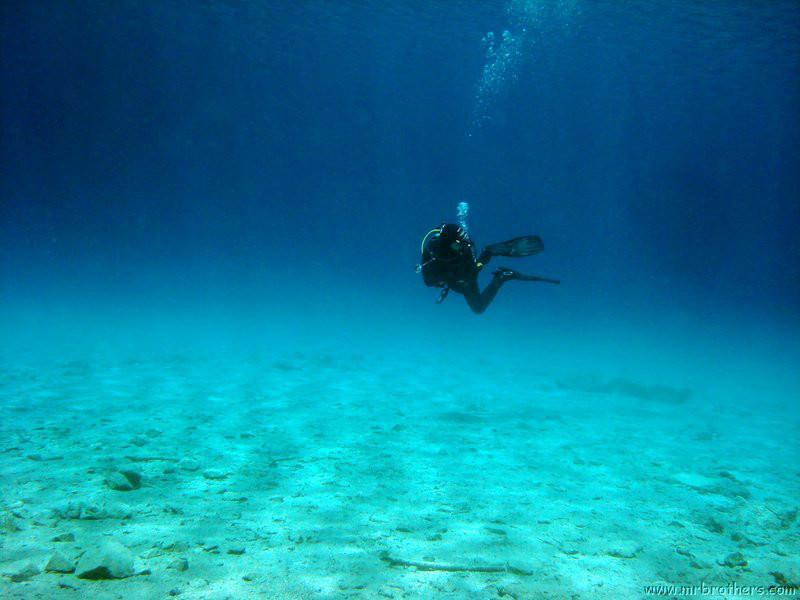 Im See angekommen bemerkten wir dann auch gleich die Folge von so vielen Tauchern: Sicht in der Einstiegsbucht gleich null :(