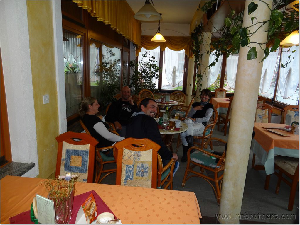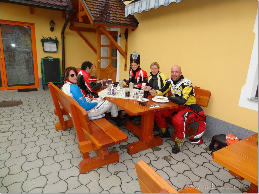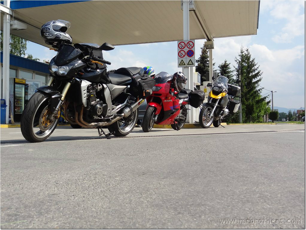 Also hohe Lenker gibt es inzwischen ja schon länger bei den MRB’s – diesmal waren jedoch das erste Mal NUR hohe Lenker auf Tour. Weiters waren das erste Mal alle Fahrer über vierzig, das erste Mal war eine Griffheizung mit auf Tour, es gibt auch schon Hartschalenkoffer in dreifacher Ausführung auf nur EINEM Motorrad… und die Windschilde sind inzwischen auch schon zum Teil verstellbar … was jedoch keine Auswirkung auf die Fahrweise hatte: gefahren wurden nur heiße Reifen wie in alten Zeiten – egal welche Anbauteile der BMW auch den Asphalt berührten.