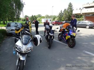 Für die OÖ-Truppe ging es bereits am Dienstag Abends los, um die erste Etappe bis nach Saubersdorf hinter sich zu bringen. Dort musste bereits am ersten Abend zwischen Bier Nr.1 und Bier Nr.2 an der "neuen" SV vom (kühlwassergeplagten) Martin die erste Reparatur gemacht werden: Der Ausgleichsbehälter musste getauscht werden. Da ließen hilfreiche Tipps natürlich nicht lange auf sich warten: er möge sich beim nächsten Motorrad vielleicht um ein luftgekühltes Model umsehen ...