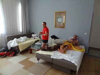 Nach diversen WC-Stop's und Apothekenaufenthalten, ging es dann zügig durch Ungarn und Kroatien nach Bosnien. Nach Einreiseschwierigkeiten ("ich brauche kein grüne Versicherungskarte") erreichten wir abends ganz schön geschlaucht unser erstes Ziel: Banja Luka. Nachdem wir in unserem Quartier die Betten selber überzogen hatten ("Andere Länder andere Sitten"), schickte man uns mit dem Elektrotaxi in ein sehr gutes Restaurant in der Altstadt, direkt am Fluss Vrbas, unweit der Burg von Banja Luka gelegen. Wir waren das erste mal positiv überrascht von diesem Land!