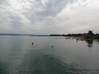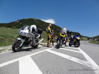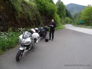 Mit großer Freude ging es dann auf die Küstenstraße in Richtung Norden. Unsere rasante Fahrt wurde jedoch in Karlobag durch zu starker Bora gestoppt. Straße gesperrt, wir mussten übers Hinterland ausweichen. Nachdem wir es nicht glauben konnten, versuchten wir es in Senj wieder mit der Küstenstraße, aber die Bora wurde immer heftiger. Also wieder 25km retour. Aus Zeitgründen wichen wir dann auf die (regnerische) Autobahn aus, dass wir schneller zur Slowenischen Grenze kommen. Kleine Unstimmigkeiten bei der Mautstation, was "1" oder "2" bedeutet, löste Markus kurzer Hand, indem er mit dem Heli gemeinsam durch die Schranke fuhr ... bin mir sicher, dass sich die Kassiererin inzwischen auch wieder beruhigt hat.