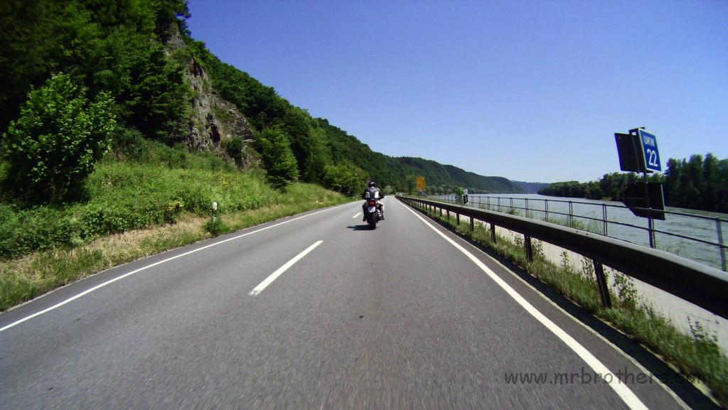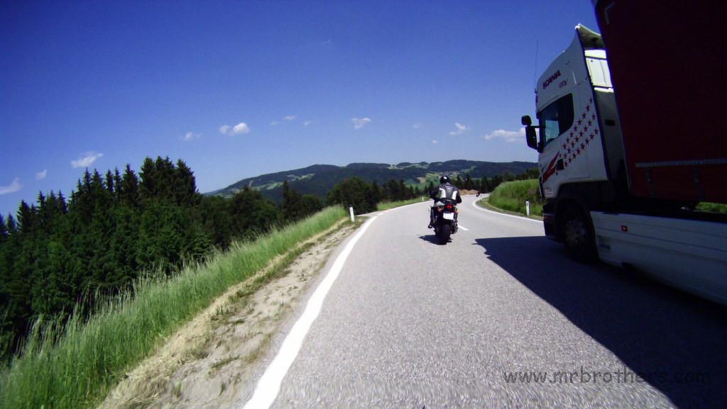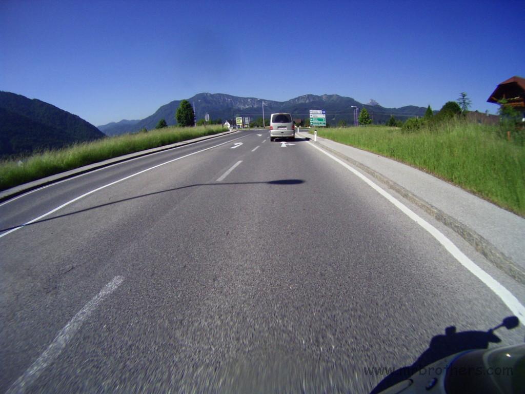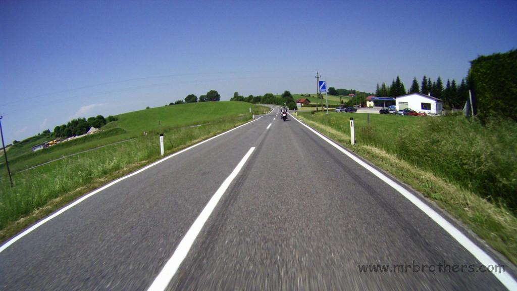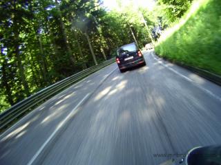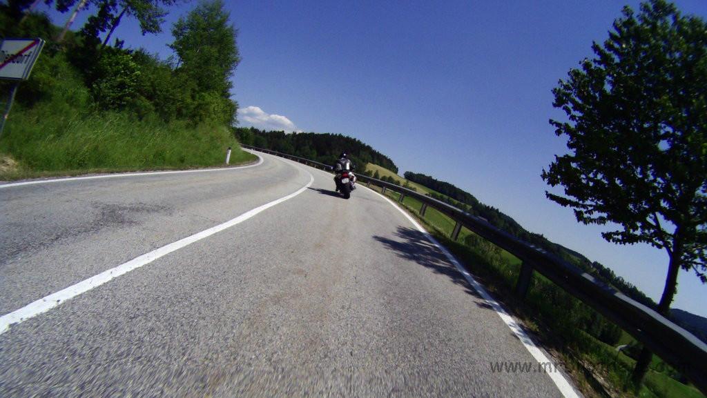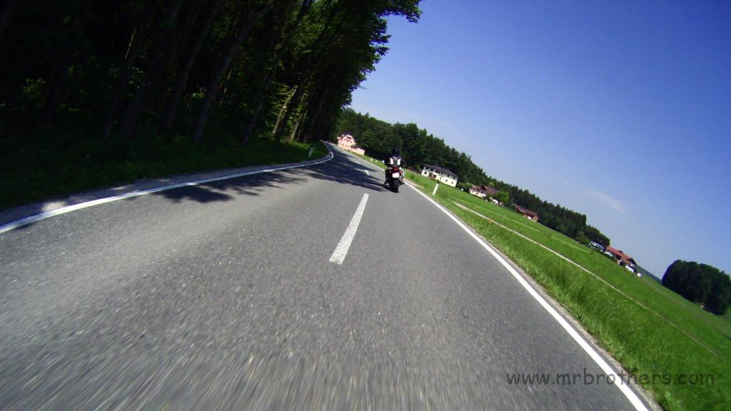 Weiters haben wir die Runde genutzt, um ein neues Feature zu testen, das bei der nächsten MRB-Tour zum Einsatz kommen wird: eine GoPro im 60-Sekunden-Bildmodus. Montiert am Spiegel der Suzi liefert sie ganz anschauliche Fotos. 2,5h Bildmaterial mit einer Akkuladung, und ein paar Einstellungaoptimierungen und ich bin zuversichtlich, dass es von der nächsten Tour dadurch auch mehr Landschaftsfotos geben wird ... und nicht nur Bierfotos und Tankstellenfotos ...