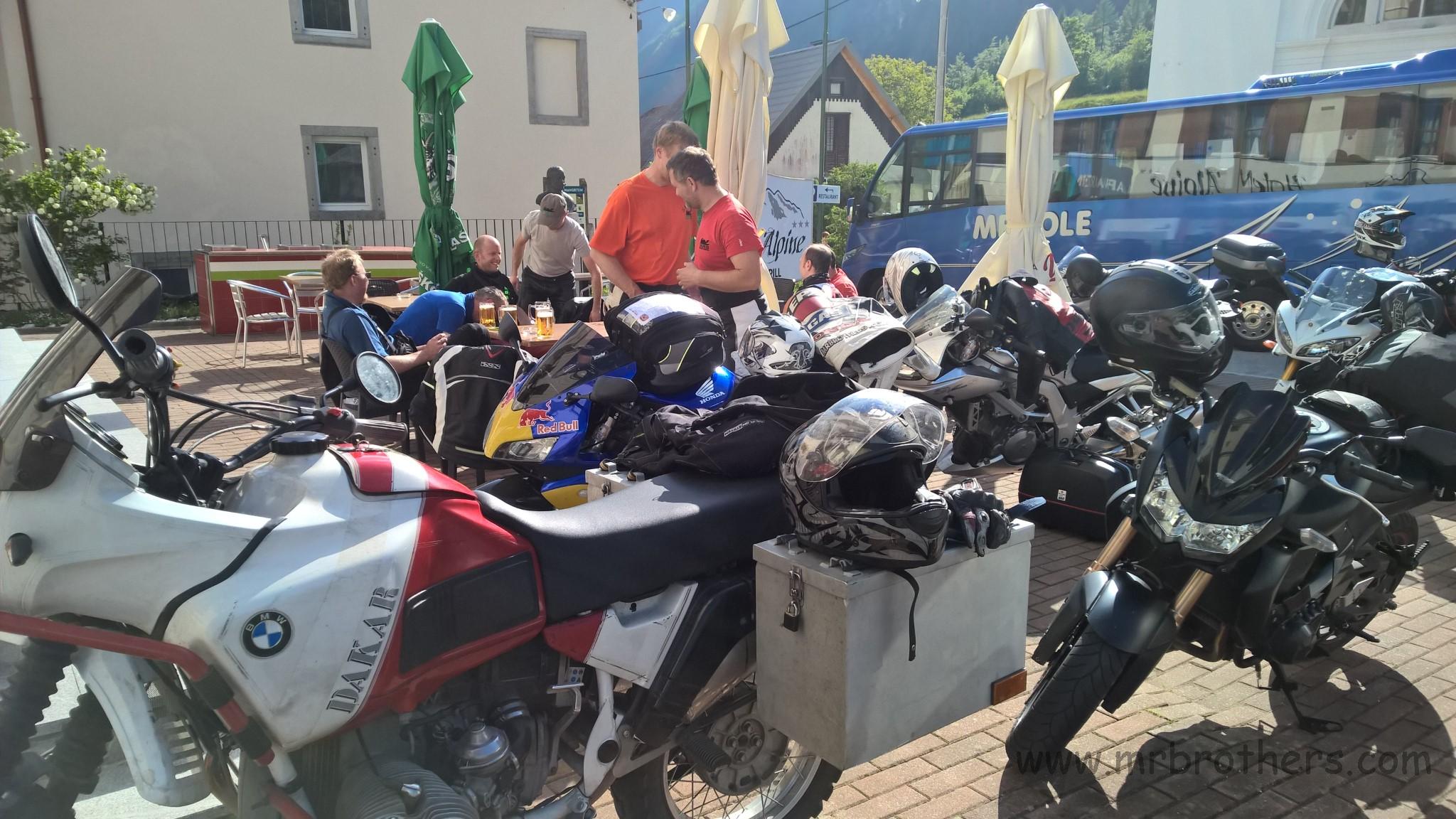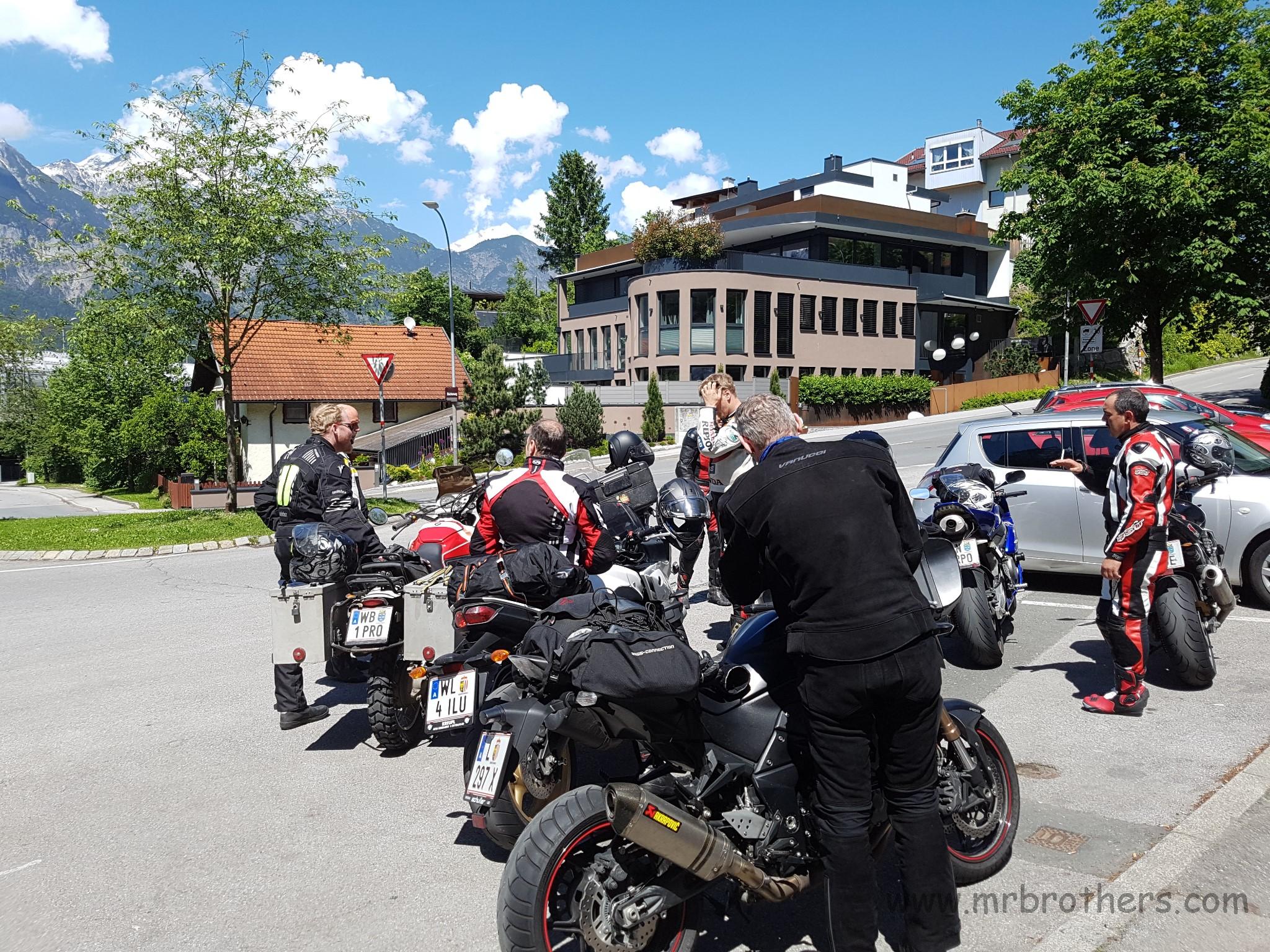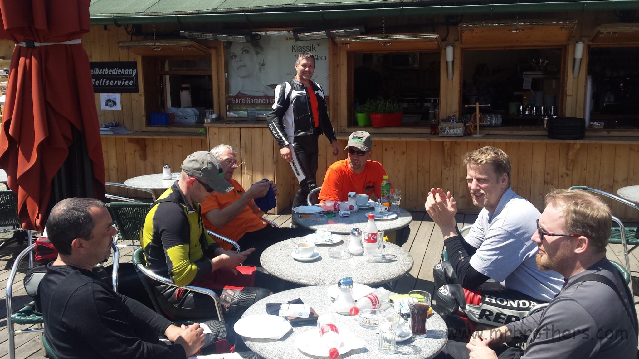 Mit etwas Verspätung und Stau durch Kitzbühl Mittagessen und Treffen mit Hörmi ging es weiter bei wunderschönen Wetter Richtung Brenner. Vor dem Brenner war noch eine kurze Reperatur bei Bertls Bike notwendig. gebrochene Sicherung.
