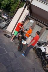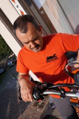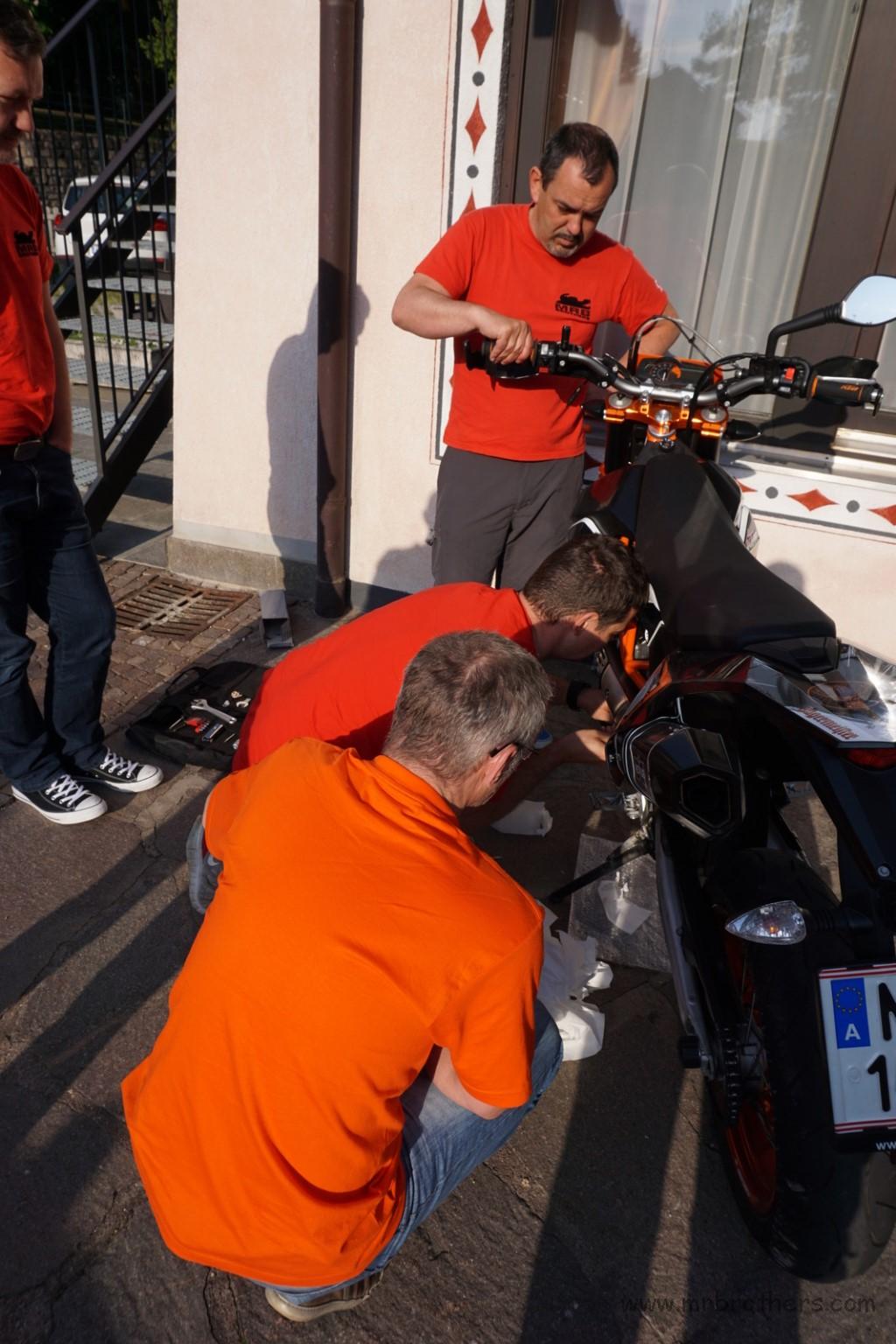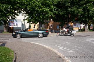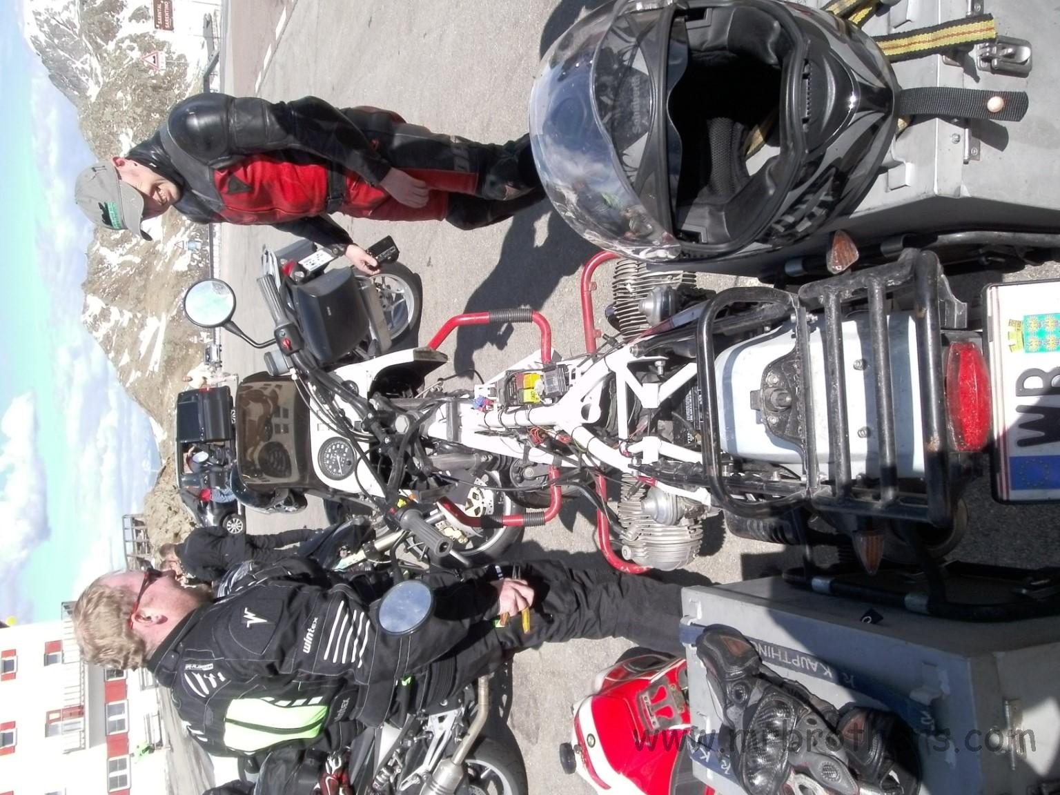 Bereits vorab machten sich einige MRBs Sorgen über die Teilnahme somancher Rookies bzw. in die Jahre gekommener Bikes. Und so musste es auch kommen, daß unser Gustl schon am Morgen mit seiner altertümlichen BMW mal nicht vom Stand kam. Anschieben! OK - läuft - zumindest 100 m weiter als schon mal jemand aufgeben mussten. Beim ersten Bahnschranken, knappe 500m nach dem Start war dann doch Schluss für die Batterie von Gustl´s BMW. Zum Glück direkt vor einer Bike-Werkstatt. Batterie getauscht und mit gut einer Stunde Verstätung aufgebrochen. Wollten wir nicht um 11:00 in Kitzbühl sein? Naja Hörmi ist das schon gewohnt...