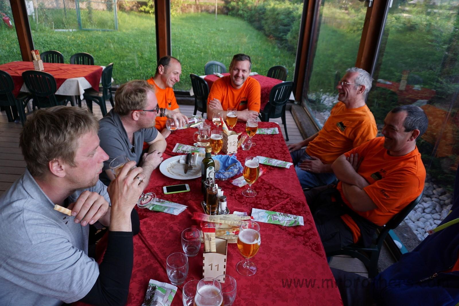 Nach 450km Anreise nach Cavalese konnten wir im Quartier für die nächsten drei Tage einchecken und uns auf Futtersuche begeben. Das Stammlokal war schnell gefunden, eine Pizzeria gleich neben dem Hotel.