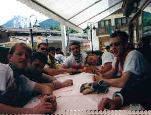 Eine unserer vielen Pausen auf der Heimreise (bei schönem Wetter!!!). Stärkung