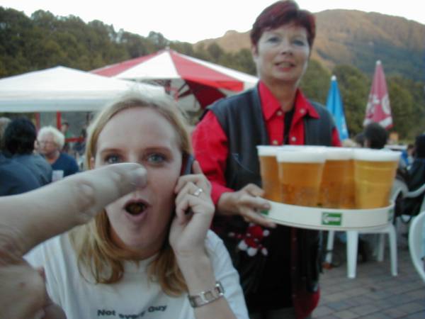 Unsere gute Seele Fr. Flecker mit einer Runde Bier! - (Da bleibt Evi