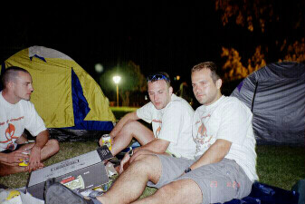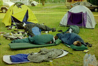 Hier sieht man Profis beim Zeltaufbau.